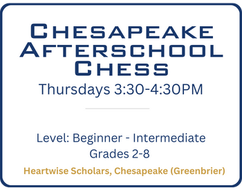 HRCA is committed to bringing the life benefits of chess to people of all ages and abilities throughout Hampton Roads. Click on the program name below each chart for more detailed info, including registration links and current openings.